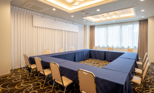 会議に利用できる会場は1か所(90㎡)、ご利用の人数に応じて半分に仕切ることが可能です。